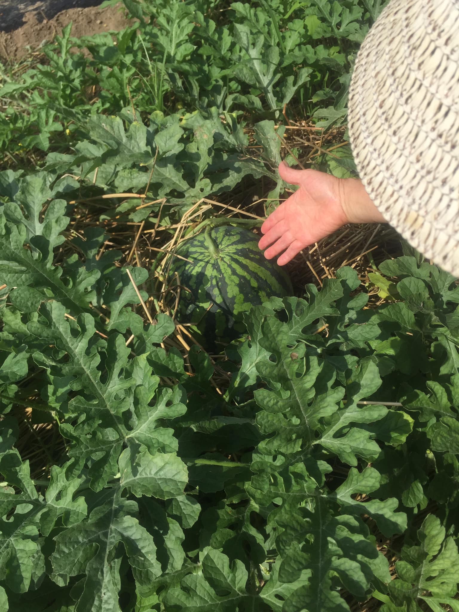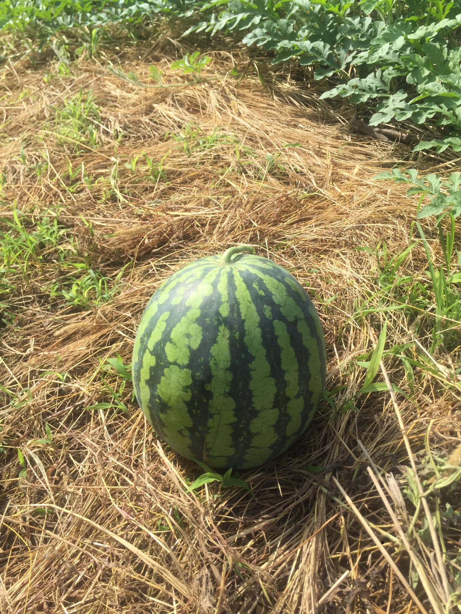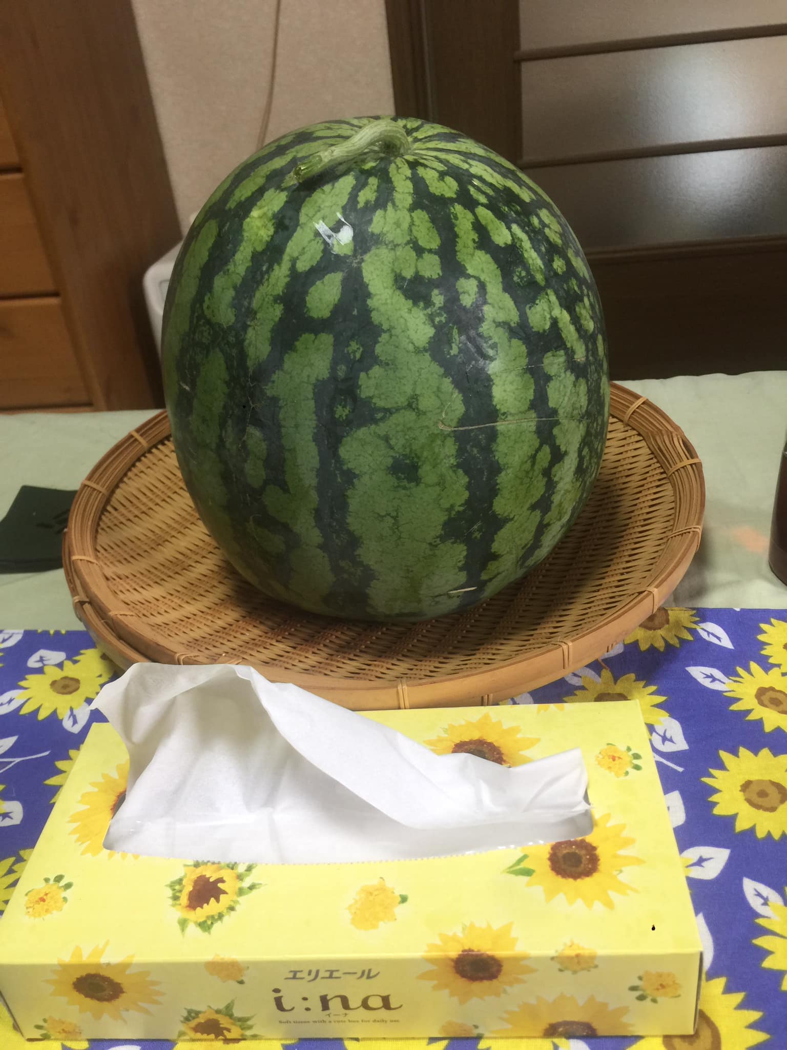💚遂に大玉スイカ(6.7kg)収穫してきました。スーパーでは税別2980円也。ずっしりと重いです。大玉スイカ予備軍は目視できる限りであと3個。小玉スイカは?です。あちこちに実のついた花が出ていました。「どうせ不発で終わるから、あまり期待しないでおこうね」と苗を植えた時には思いました。誰が想像できたでしょうか?これだけの収穫を。