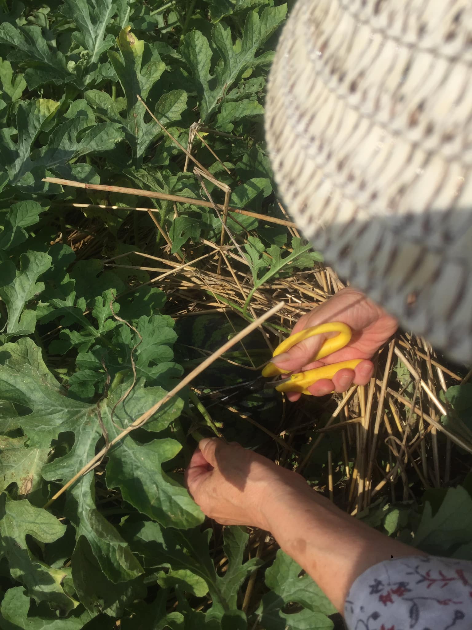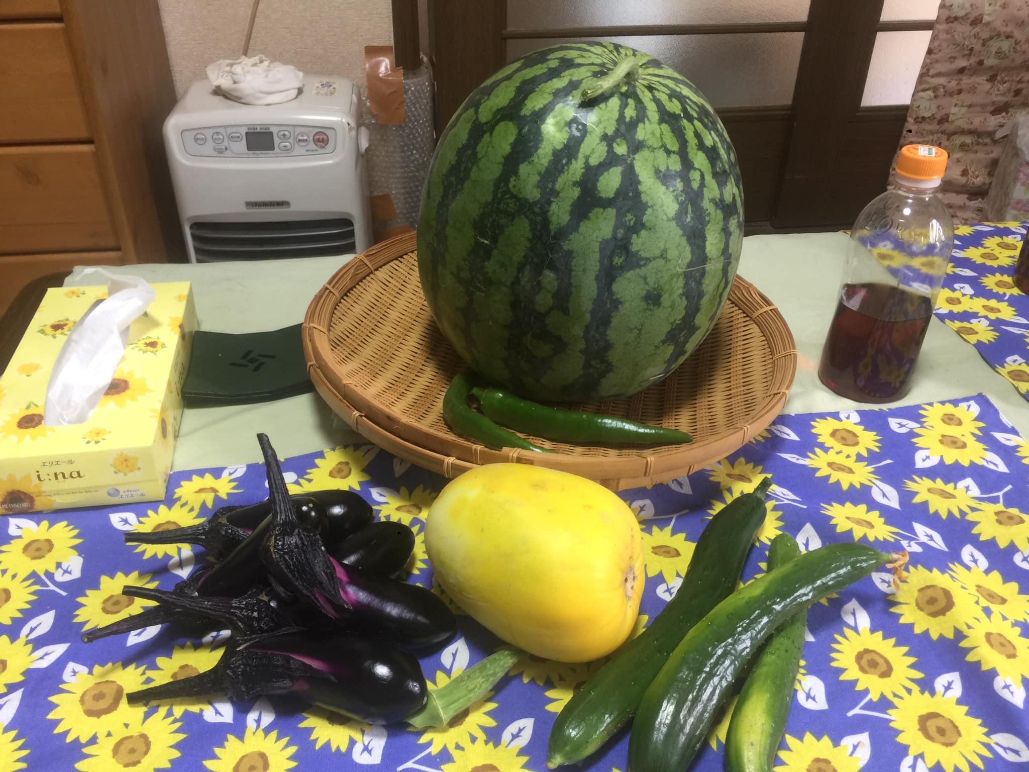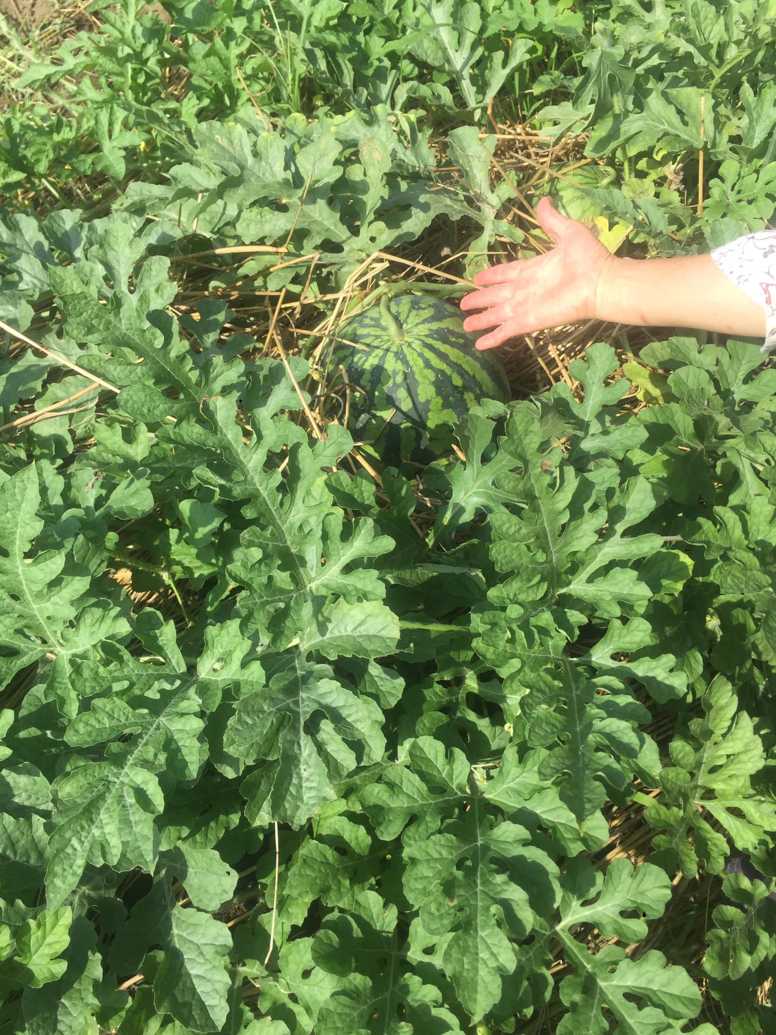 💚遂に大玉スイカ(6.7kg)収穫してきました。スーパーでは税別2980円也。ずっしりと重いです。大玉スイカ予備軍は目視できる限りであと3個。小玉スイカは?です。あちこちに実のついた花が出ていました。「どうせ不発で終わるから、あまり期待しないでおこうね」と苗を植えた時には思いました。誰が想像できたでしょうか?これだけの収穫を。
