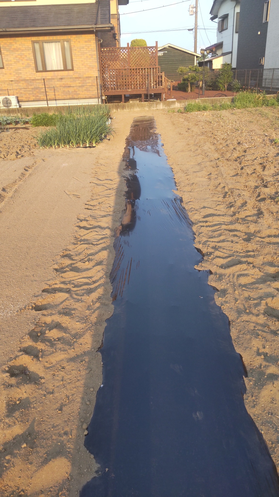 💚昨日家内が一人でマルチを張りました。これだけピシッと決められるなんて凄いと思いませんか?と自画自賛。