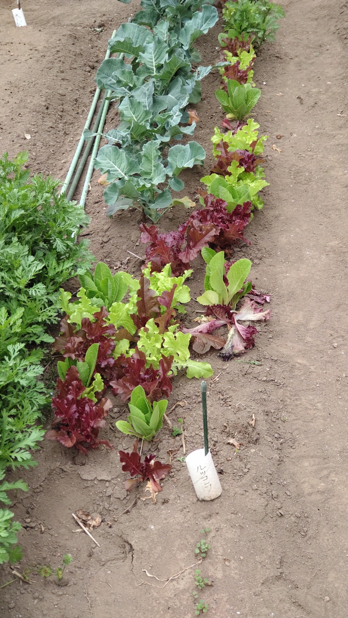 💚苗の植え付けしてます。すでにほうれん草、ルッコラ、長ネギなどの種を蒔いてあります。