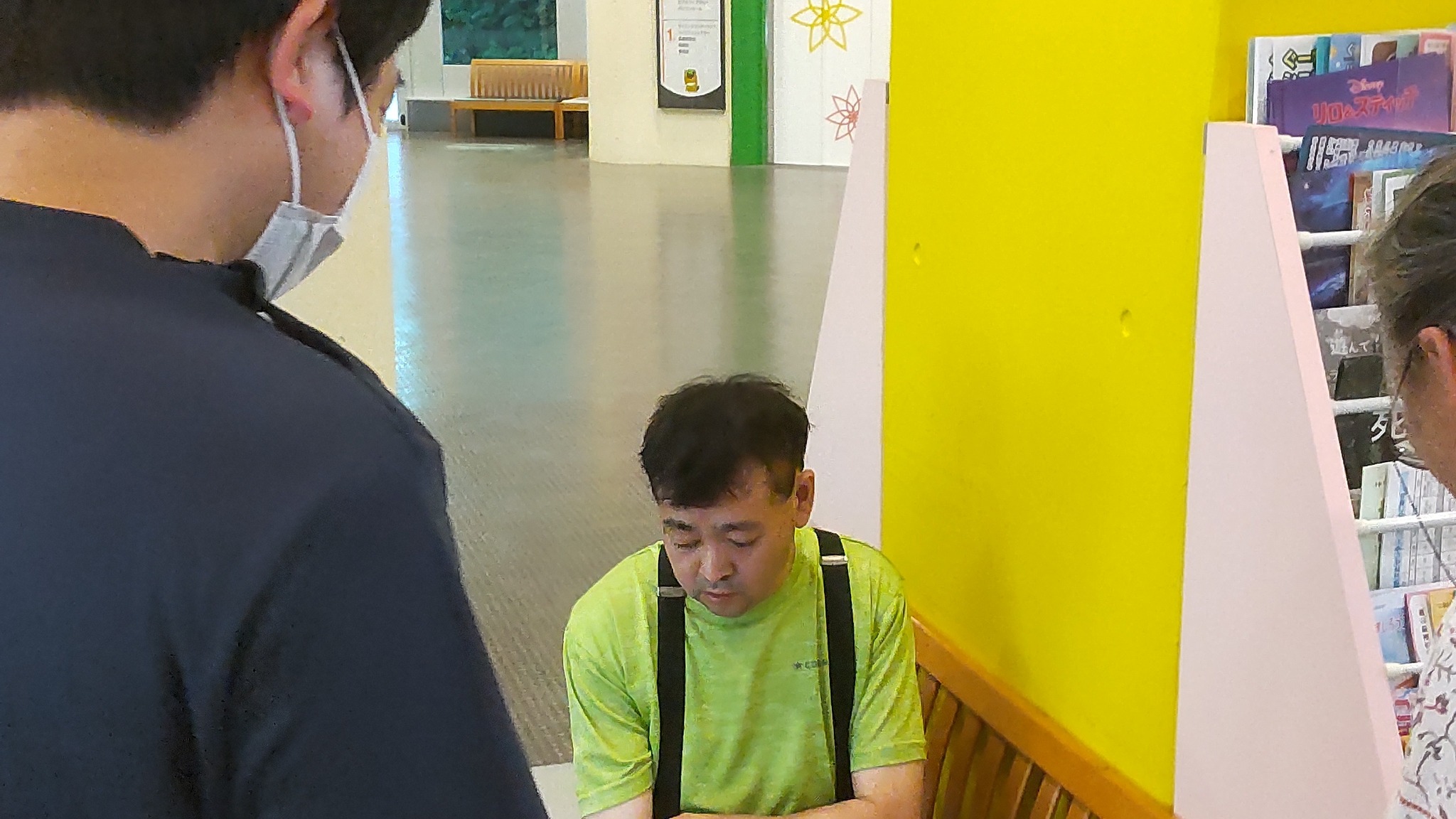 💚親子揃って来るのは7年ぶりです。今朝は施設の車に乗らず、午前11時40分に施設に送り届けました。気温も急上昇するので迷ったのですが、今日は施設が早帰りなので、十分楽しめないままの帰宅は、ナイトフィーバーにつながるので、やはり連れて行くことに決定。男性ヘルパーさんも同行しました。公園は全く人がいません。駐車場から冷房のよく効いた児童館に直行。ここでの楽しみは、チラシ集めです。大量に持ち出すので、見ていないところでそっと返しておきます。来て20分で駐車場へ戻り、我が家に帰宅。予定してい2時間半丁度でした。