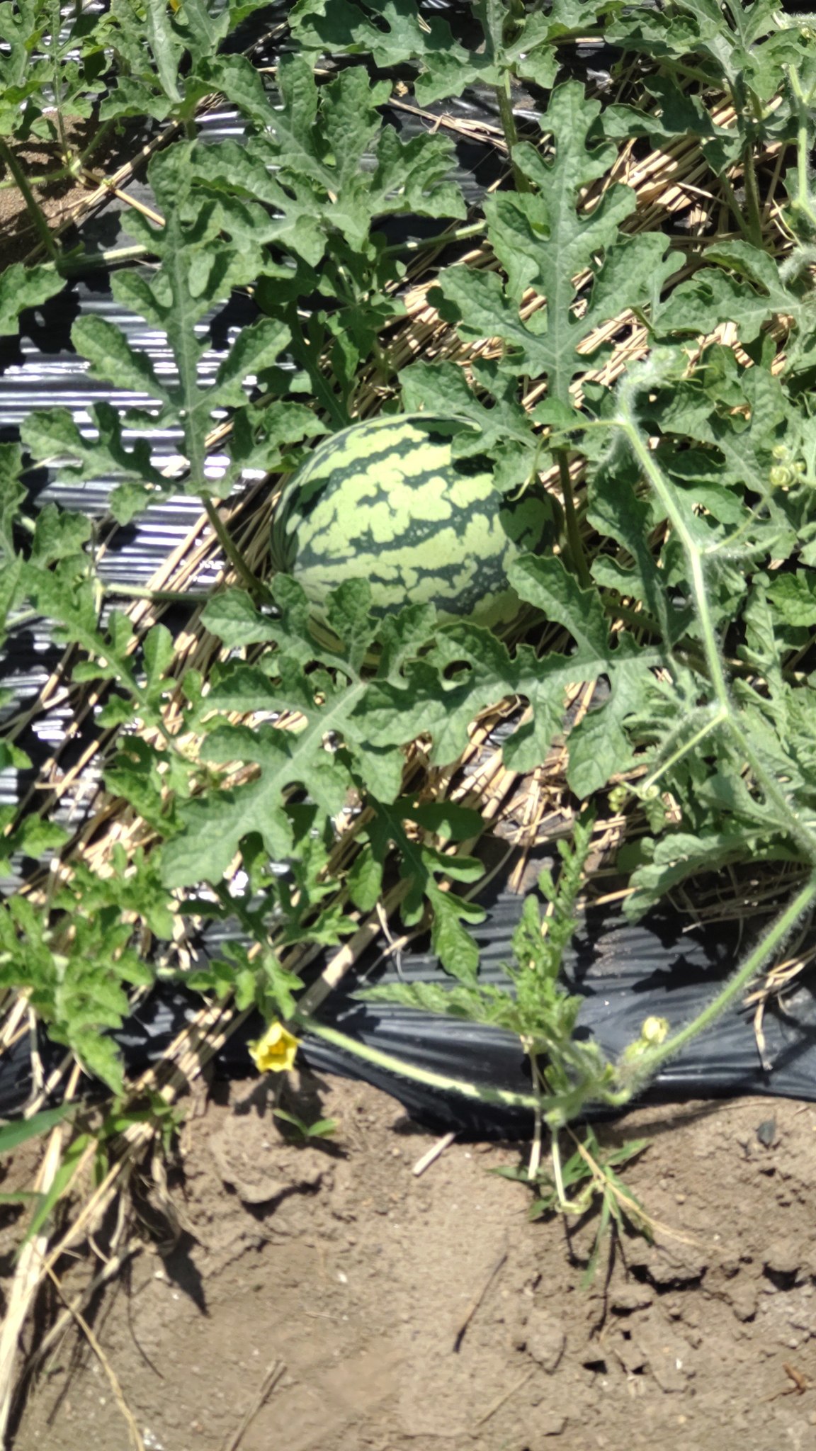 💚軽トラ1杯分の麦わらを畑に持って行き、さっそくスイカやキュウリの葉の下に敷きました。直径10cmほどの小玉スイカが目視で4個なってました。きゅうりを7本。そしてそしてついにキタアカリ(ジャガイモ)も試し堀すると出てくる出てくる!今日の夕方か明朝芋ほりです。