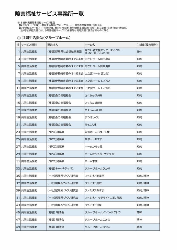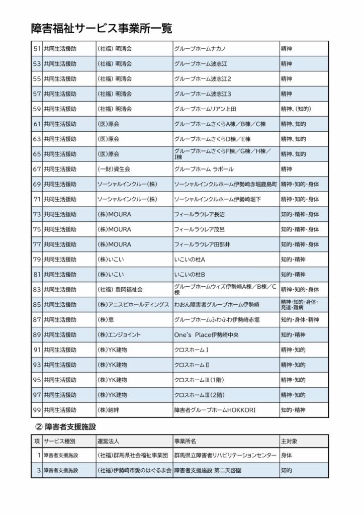 Asaka伊勢崎市内の共同生活援助(グループホーム)などの事業所一覧です。